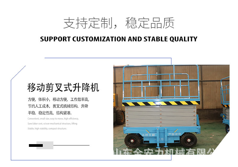 移動式升降平臺能夠在,不同高度工作狀態(tài)下快速、慢速行走,可以在空中方便的操作平臺連續(xù)完成上下、前進(jìn)、后退、轉(zhuǎn)向等工作,作業(yè)高度可達(dá)12米,載重300~2000公斤,適合工廠車間、廣場大堂機場、園區(qū)等有高空作業(yè)需求的客戶。